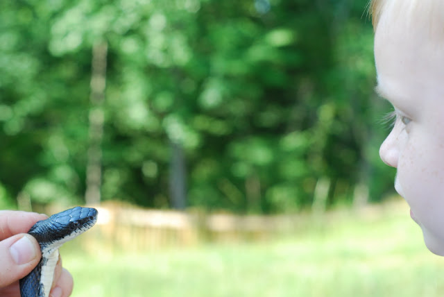 Husband found a snake in the backyard and they couldn't stop playing with him, I ran for cover!